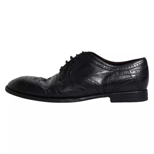 Dolce & Gabbana Dark Blue Leather Derby Wingtip Formal Shoes