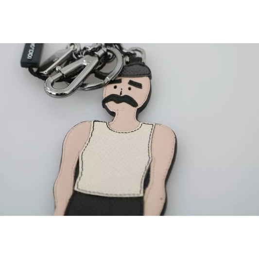 Dolce & Gabbana Black Leather Fisherman Logo Badge Keyring Keychain