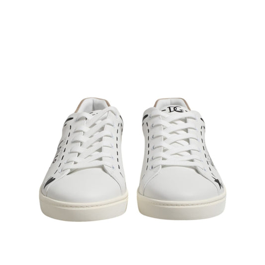Dolce & Gabbana White Black Logo Leather Lace Up Sneakers Shoes