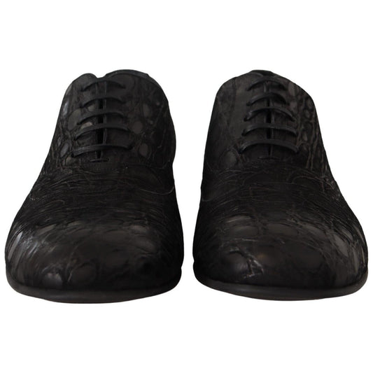 优雅的黑色天鹅绒和异国情调皮革正装鞋