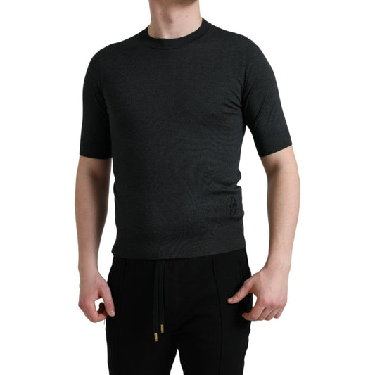 海军蓝色羊绒圆领毛衣 - 修身版型