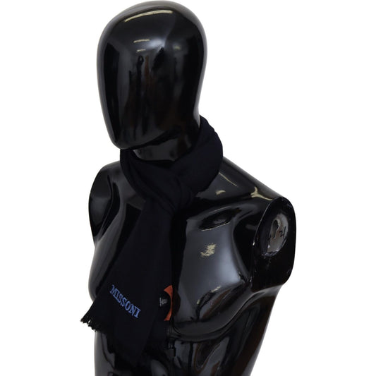 带徽标刺绣的优雅黑色羊毛围巾