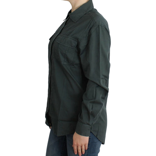 优雅灰色棉质纽扣衬衫