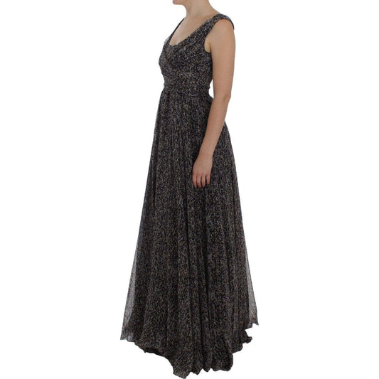 优雅花朵真丝全长连衣裙